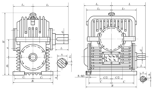 (2)PWO型—蝸桿在蝸輪之上平面二次包絡(luò)環(huán)面蝸桿減速器;